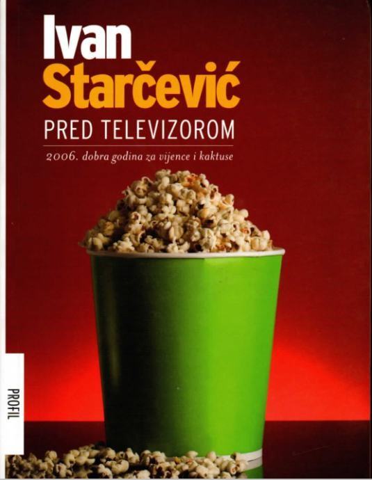 Pred televizorom - 2006. Dobra godina za vijence i kaktuse Ivan Starčević duboko je uvjeren u dvije stvari: da Hrvatska ima jednu od najgorih televizija na svijetu (i da takvu zaslužuje) te da je veslanje jedan od najvažnijih svjetskih sportova. Ni jedno ni drugo nije točno. Te dvije tvrdnje su - tvrde neki - usko povezane jer je jedan od važnih razloga što je toliko kritičan prema televizijskim sportskim novinarima upravo činjenica da oni ignoriraju veslanje, sport kojim se on bavi cijelog života pa stoga i danas izgleda kao mladić. Kad bi veslanja bilo više na televiziji, vjerojatno bi i Starčevićeva kolumna bila nešto blaža, što - međutim - nikako ne bi bilo dobro.Jer Starčević se izborio da ga smatraju prvim televizijskim kritičarem suvremene Hrvatske upravo zato što je nesmiljeno oštar prema svakome tko mu se na ekranu ne sviđa. Spreman je svojim poganim jezikom udarati po svakome za koga misli da mu nije mjesto na televizijskim ekranima, ali i po nekima koji se, doduše nikada na ekranima ne pojavljuju, ali iza kulisa odlučuju što će se na njima pojavljivati. Mnogi to vrlo teško primaju. No tom novinaru starog kova, koji svaku svoju tvrdnju minuciozno provjerava, nije glavni cilj da šiba po televizijskim trudbenicima kako bi utjecao da se program popravi. Njemu je mnogo važnije da zabavi onog tko čita njegovu kolumnu. Često nakon izlaska novog broja pita kolege koliko su se puta nasmijali dok su je čitali, a ako je to bilo barem dva puta, on je jako zadovoljan.Stranica: 239Dimenzije: 19,5 cmJezik: ZagrebPismo: LatinicaStanje: Rabljena, očuvana knjigaUvez: MekiGodina: 2007