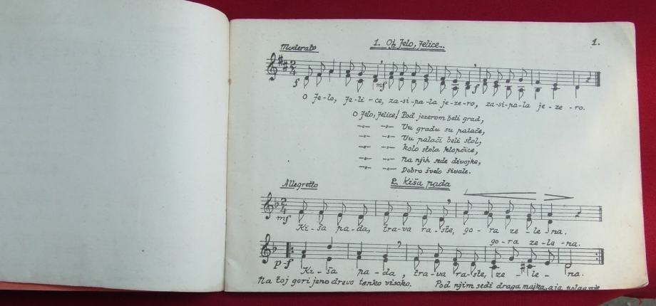 Knjižica ima 32 stranice i uključuje 40 pjesama. Izbor narodnih popjevaka za dječji zbor u dva glasa autora M.G. Kovača iz 1937 godine