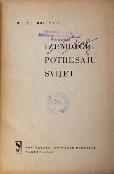 IZUMIOCI POTRESAJU SVIJET Werner Braunbek Zagreb 1960