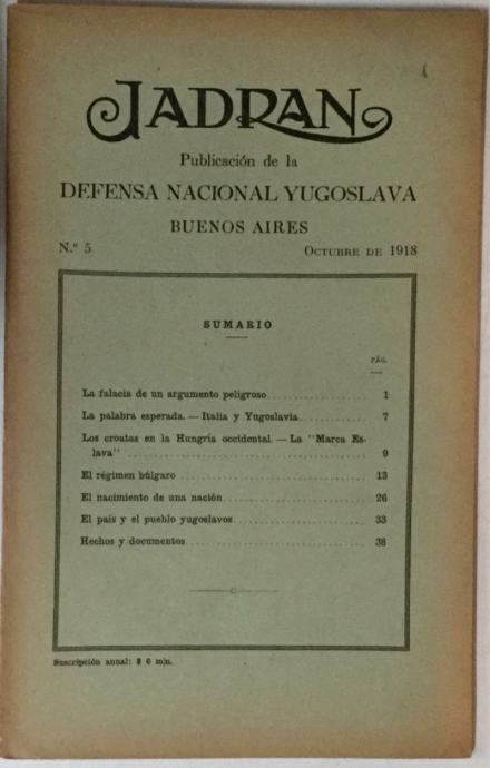 JADRAN : PUBLICACION DE LA DEFENSA NACIONAL YUGOSLAVIA : 1919. BUENOS