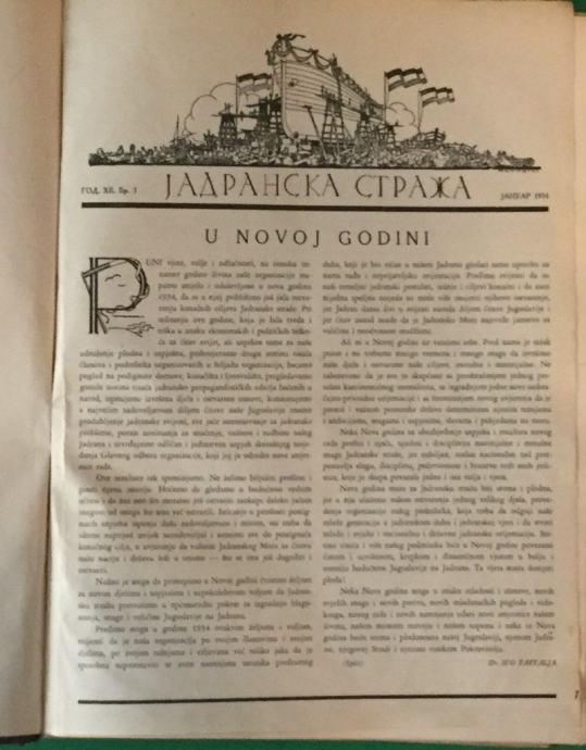 JADRANSKA STRAŽA ČASOPIS GODINA 1934.