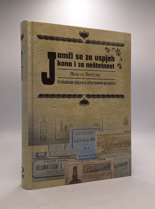 Mislava Bertoša: Jamči se za uspjeh kano i za neštetnostAutorica Mislava Bertoša ovom svojom knjigom zalazi u područja koja su u Hrvatskoj posve nova ili su tek bila dotaknuta u dosadašnjim znanstvenim istraživanjima – u područje semiologije reklame. Reklamni diskurs i njegove sociosemiološke determinante i posljedice obrađuju se na primjeru jedne multikulturalne, višejezične i socijalno kompleksne zajednice – Istre, koja se razvijala unutar goleme i složene Austro-Ugarske Monarhije, i to na prijelazu iz XIX. u XX. stoljeće, u vremenu u kojem se reklame ukazuju kao sve značajniji faktor oblikovanja kolektivnih i individualnih iskustava.Knjiga ima posvetu.Stranica: 338Dimenzije: 17.5x24.5Jezik: ZagrebPismo: LatinicaStanje: Vrlo dobroUvez: TvrdiGodina: 2008