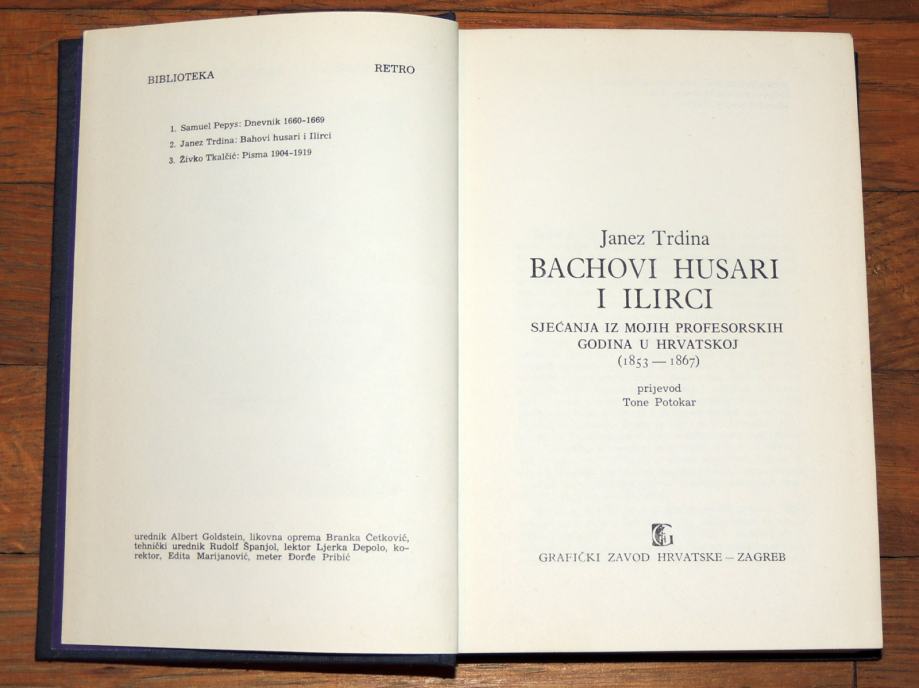 Janez Trdina Bachovi husari i ilirci. Sjećanja iz mojih profesorskih godina u Hrvatskoj (1853-1867)