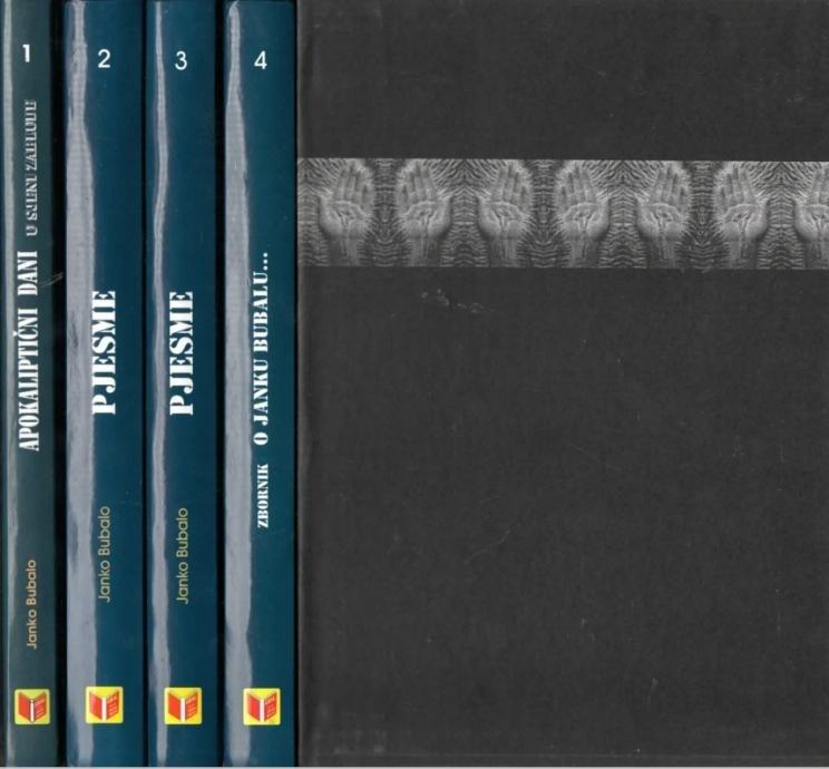 Janko Bubalo: Apokaliptički dani,Pjesme 1 i 2,Zbornik o Janku Bubalu..Stranica: 1120Jezik: Široki BrijegPismo: LatinicaStanje: Nova knjigaUvez: TvrdiGodina: 2002