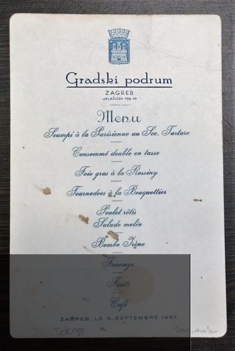 JELOVNIK - GRADSKI PODRUM ZAGREB, 1935