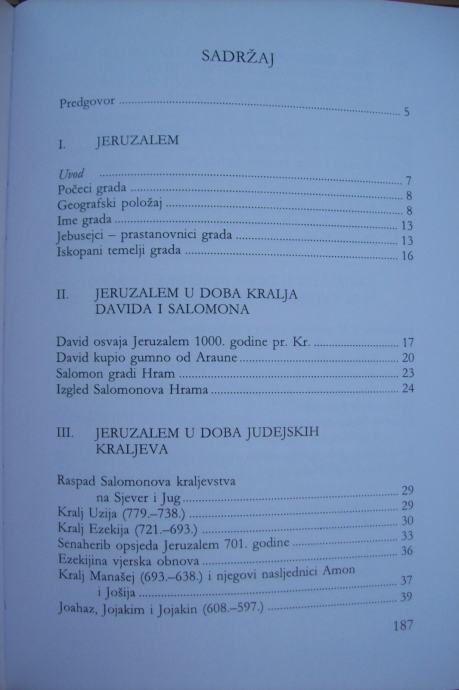 Zanimljiv je to grad. Bio sam mu u posjetima preko 50 puta, ali sam ga svaki put drukčije doživljavao. Uvijek sam u njemu nešto novo otkrivao; u njemu iznad svega duhovno uživao. Nema takva grada na svijetu, nema Jeruzalemu slična grada nigdje na kugli zemaljskoj. Ono što Jeruzalem krije iza svojih debelih, kamenih zidina nigdje se drugdje na svijetu ne može kriti ni otkriti.