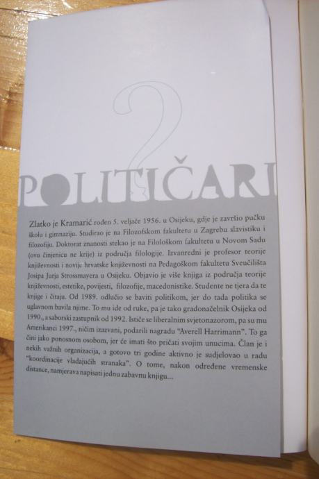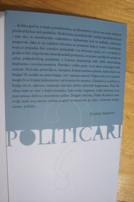 »Ova knjiga je nastala u jednoj dokolici, kada čovjek samome sebi pokušava objasniti što mu se sve dogodilo i da li se to baš tako moralo dogoditi, te kako vrlo lako mijenjamo svoja uvjerenja zavisno od aktualne životne pozicije«. Kramarić smatra da treba demistificirati političare, kao ljude od krvi i mesa, koji imaju puno vrlina i mana i da politici treba pristupiti s jedne ljudskije strane i u tom slučaju politika može funkcionirati i drugačije. Eksplicirao je kako je ova knjiga apel za jedno pristojno društvo i apsolutnu toleranciju, apel za drugačiji pristup ne samo političara prema javnosti, nego i javnosti prema onim političarima koji nisu toliko klasični. Kramarić je istakao kako ga vrijeđa činjenica kada netko kaže da su svi političari isti, te onda on nastoji reagirati, jer smatra da bi javnost razliku trebala osjetiti i razaznati, dok kulturnu komunikaciju smatra polazištem za sve one druge vidove komunikacije koji kasnije dolaze.