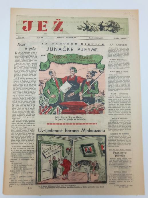 Jež br. 492/1948.Urednik: Ljubiša ManojlovićStranica: 4Dimenzije: 32x45Jezik: BeogradPismo: LatinicaStanje: Vrlo dobroUvez: MekiGodina: 1948
