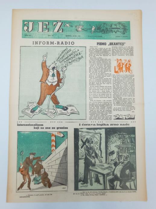 Jež br. 517/1949.Urednik: Ljubiša ManojlovićStranica: 4Dimenzije: 32x45Jezik: BeogradPismo: LatinicaStanje: Vrlo dobroUvez: MekiGodina: 1949