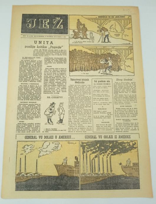 Jež br. 599/1950.Urednik: Ljubiša Manojlović Stranica: 4Dimenzije: 32x45Jezik: BeogradPismo: LatinicaStanje: Vrlo dobroUvez: MekiGodina: 1950