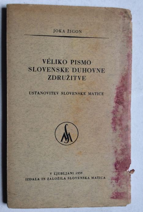 JOKA ŽIGON, VELIKO PISMO SLOVENSKE DUHOVNE ZDRUŽITVE, 1935.