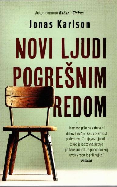 utor romana Račun i Cirkus„Karlson piše na zabavan i duhovit način i kad stvarnost podrhtava. Za njegove junake život je izazovna šetnja po tankom ledu, s ponorom koji uvek vreba iz prikrajka.“– FeminaZbirka priča Novi ljudi pogrešnim redom vodi nas kroz živote naizgled običnih ljudi, ali u stvarnosti koja se malo-pomalo menja i stoga postaje upitna.Razvedena žena u potrazi za smislom, dečak na pragu adolescencije, usamljeni posmatrač za šankom – Karlson sa preciznošću i suptilnim humorom osvetljava njihove unutrašnje svetove. Iako svaka priča može da se čita samostalno, povezuju ih niti prošlosti i sadašnjosti, izazivajući čitaoca da iznova preispita ono što je tek pročitao.Njegova proza je spoj komedije i tragedije, svakodnevice i apsurda, vođena izuzetnim osećajem za dijalog i unutrašnje monologe likova. U Karlsonovom pripovedanju ljudi ne samo da govore ono što ne misle već postaju suprotnost onom što veruju da jesu.Ako tražite književni doživljaj koji briše granice između realnosti i fikcije, Novi ljudi pogrešnim redom pružiće vam retku kombinaciju lakoće, dubine i pripovedačkog majstorstva.„Možda je najveće dostignuće ove zbirke to što Karlson uspeva da oživi jednu veoma jednostavnu, ali suštinsku spoznaju: spoznaju da su svi obični ljudi veoma neobični.“– Jönköpings-Posten„Likovi u ovih jedanaest priča retko se nalaze u zaista dramatičnim situacijama. Više je reč o svakodnevici. O malim drhtajima u postojanju. Karlson uživa u tome da vas udobno smesti na tepih samo da bi vam ga odmah zatim spretno izmakao ispod nogu. Izuzetno intrigantna knjiga.“– Västerbottens-Kuriren„Ovo je vrhunska kratka proza.“– Dagens NyheterStranica: 224Dimenzije: 13x20 cmJezik: BEOGRADPismo: LatinicaStanje: Nova knjigaUvez: MekiGodina: 2025