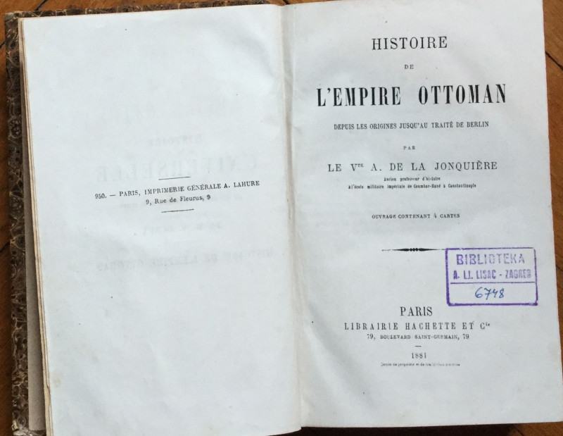 JONQUIERE, HISTORIE DE L'EMPIRE OTTOMAN, PARIS, 1881.