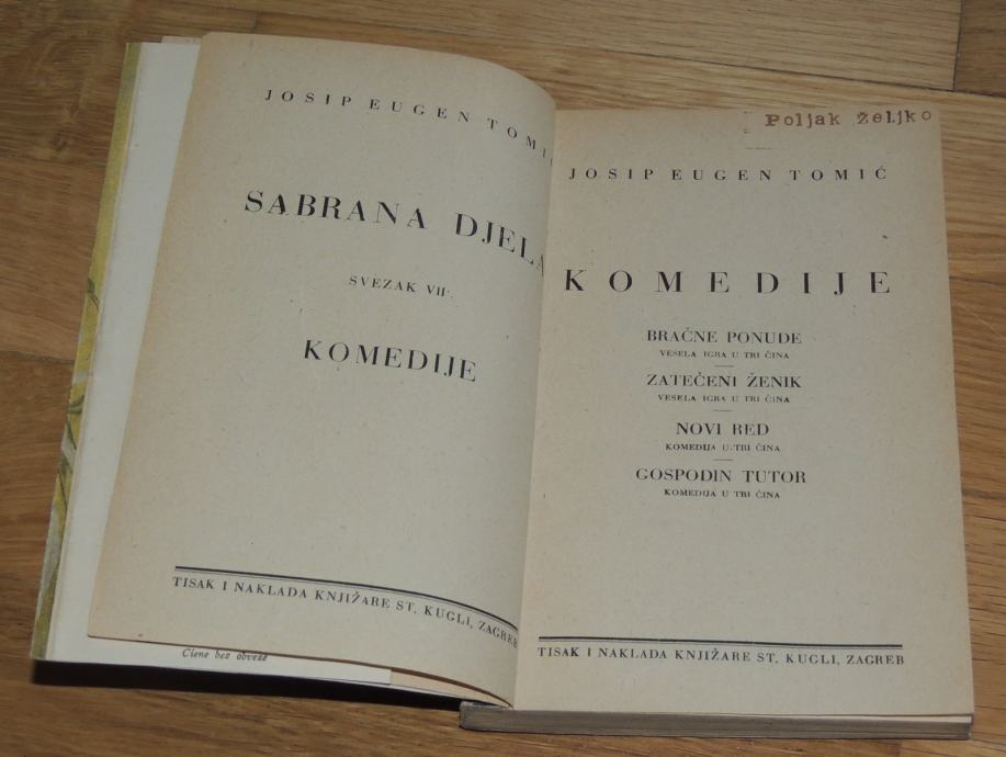 Josip Eugen Tomić Komedije naslovnica Maurović