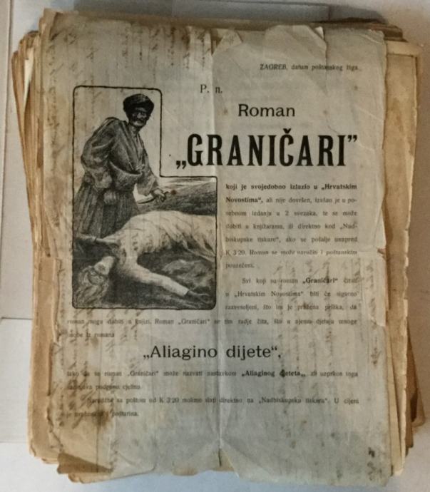 U kompletu s rukopisom nalazi se i letak kojim se najavljuje izdavanje romana Graničari i opisuje njegova veza s romanom Aliagino dijete te mali plakat kojim se najavljuje 152. izvedba Graničara u Hrvatskom zemaljskom kazalištu u Zagrebu, 15. studenoga 1903. godine