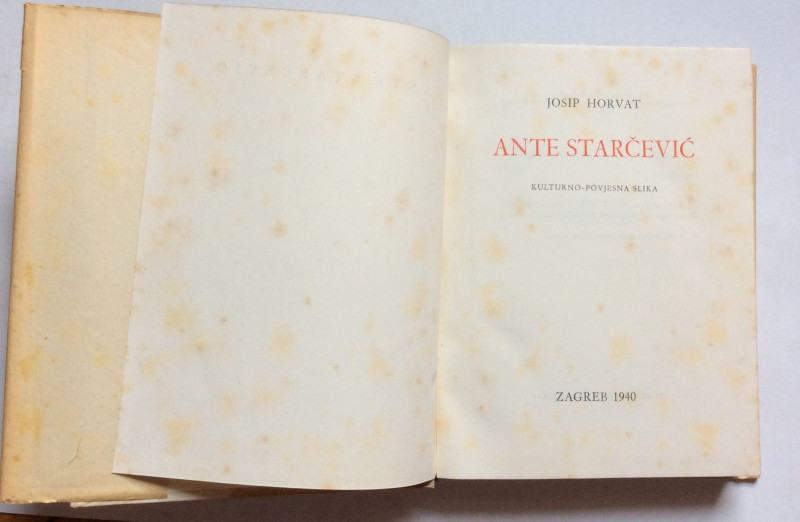JOSIP HORVAT, ANTE STARČEVIĆ, 1940., U ORGINAL OMOTU I KORICAMA !!!!!