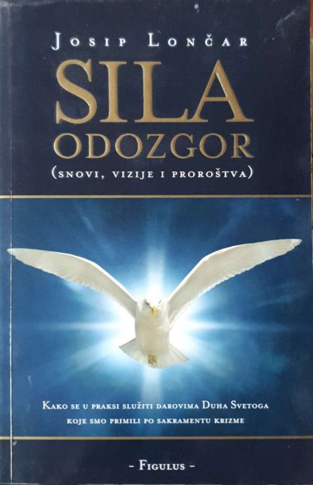 Josip Lončar: Sila odozgorSnovi, vizije i proroštvaOvo je knjiga o snovima, vizijama, proroštvima i darovima koje nam Duh Sveti daje kako bi mijenjao naša srca, a s nama i svijet oko nas. Sila odozgor (sila Duha Svetoga) koju primamo po sakramentu svete potvrde i koja je toliko snažna da može promijeniti ljudska srca djeluje sasvim neočekivano: kroz snove, vizije i proroštva.