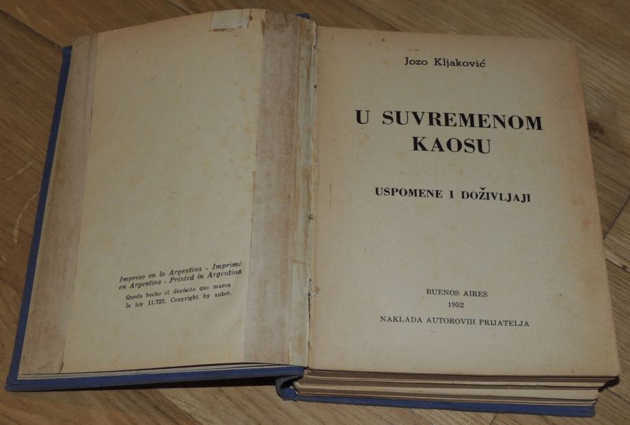 Jozo Kljaković U suvremenom kaosu emigracija posveta i potpis autora
