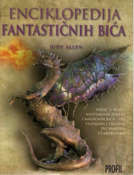 »Enciklopedija fantastičnih bića» povest će vas začaranom zemljom narodne predaje i fantastike. Upoznat ćete mitska bića, fantastične zvijeri i nestašne male ljude, kao i sablasne duhove i krvožedne vampire. Razotkrijte magičnu moć priča koja je ovim bićima omogućila da stoljećima žive u mašti svih ljudi svijeta, kao i tajanstvenost i predrasude što ih prate.U začaranoj zemlji naše mašte žive različita mitska bića, zvijeri, mali ljudi, duhovi, krvoločna bića. Ova će vas knjiga odvesti na to ponekad opasno mjesto i otkriti vam gdje žive vile, vilenjaci, domaći, goblini, zmajevi, Elementali, Nimfe, Kiklopi, vještice, vampiri..., objasniti kako se ponašaju i zašto, jesu li dobroćudni prema ljudima ili nisu. Poučit će vas kako se ponašati prema njima jer su, primjerice, vile dobroćudne i blage te pomažu ljudima, gremlini vole prčkati po avionima i elektroničkim spravama, zračni Elementali potiču ljude na inspiraciju u umjetnosti i izumima, australski mimiji jedu ljude, a može ih se otjerati bukom, Žuti zmaj istoka na svojim je leđima ljudima donio prva kineska slova, a Veli Jože čuvao je Motovunsku šumu.Stranica: 144Jezik: ZagrebPismo: LatinicaStanje: OdličnoUvez: TvrdiGodina: 2007
