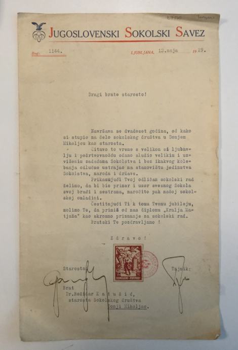 JUGOSLOVENSKI SOKOLSKI SAVEZ : PRIZNANJE ZA SOKOLSKI RAD