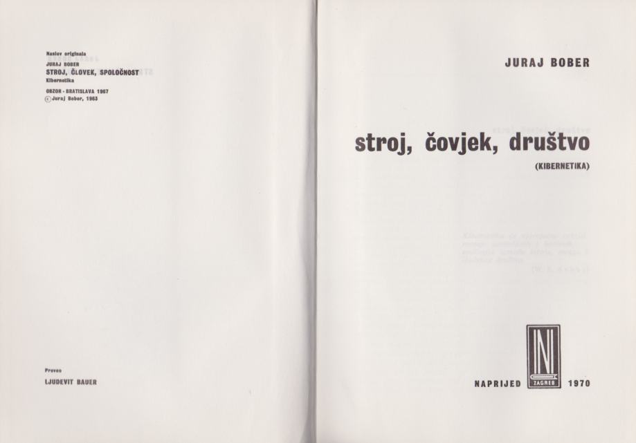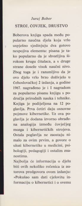 Juraj Bober: Stroj, čovjek, društvo, (Kibernetika), Naprijed, Zagreb 1970.