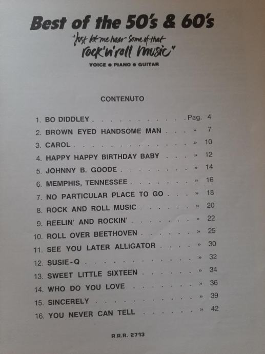 Knjiga sadrži 16 pjesama za voka, klavir i gitaru; nova je, nije rabljena, nema oštećenja, osim što je malo požutjela od starosti.
