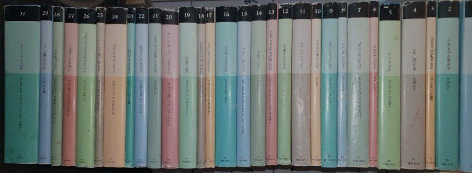 Jutarnji list klasici XX stoljeća 1-30 Popis knjiga: 1. Umberto Eco: Ime ruže 2. Vladimir Nabokov: Lolita 3. Ernest Hemingway: Starac i more 4. Saul Bellow: Herzog 5. Ivo Andrić: Na Drini ćuprija 6. Albert Camus: Stranac 7. Truman Capote: Hladnokrvno ubojstvo 8. Joseph Conrad: Srce tame 9. Miroslav Krleža: Na rubu pameti 10. Jorge Luis Borges: Aleph 11. Malcolm Lowry: Pod vulkanom 12. Graham Greene: Mirni Amerikanac 13. Aleksandar Solženjicin: Jedan dan Ivana Denisoviča 14. Franz Kafka: Dvorac 15. Italo Calvino: Ako jedne zimske noći neki putnik 16. Marcel Proust: Put k Swannu 18. Marguerite Duras: Ljubavnik 19. André Gide: Krivotvoritelji novca 20. David Herbert Lawrence: Ljubavnik Lady Chatterley 21. John Maxwell Coetzee: Sramota 22. Arthur Koestler: Pomračenje u podne 23. Thomas Mann: Smrt u Veneciji 24. William Faulkner: Svjetlost u kolovozu 25. George Orwell: Životinjska farma 26. Edward Morgen Forster: Put do Indije 27. Luigi Pirandello: Pokojni Mattia Pascal 28. Robert Mush: Pomutnje gojenca Törlessa 29. Virginia Woolf: Svjetionik 30. Jaroslav Hašek: Doživljaji dobrog vojnika ŠvejkaJezik: ZagrebPismo: LatinicaStanje: OdličnoUvez: Tvrdi