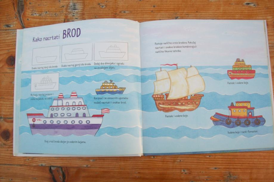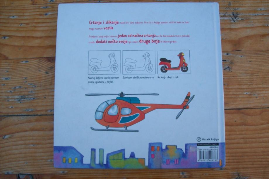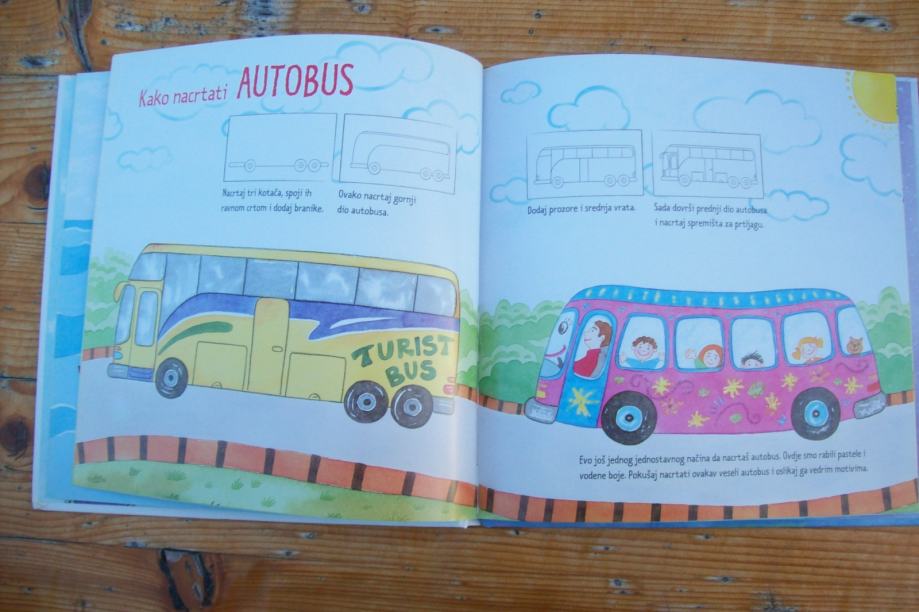 Kako nacrtati i naslikati brod, zrakoplov, kamion, autobus, svemirsku raketu...? Uz primjere u ovoj knjizi to je lako i zabavno: korak po korak upućuje se u crtanje željenog lika olovkom i njegovo bojanje primjenom različitih likovnih tehnika.