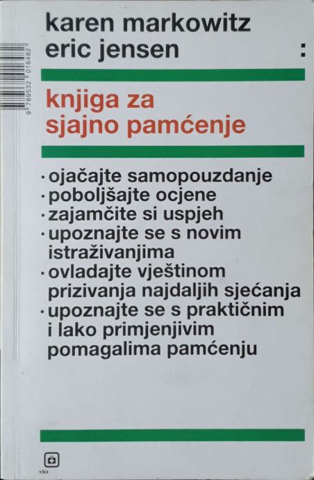 Karen Markowitz, Eric Jensen: Knjiga za sjajno pamćenjeKnjiga za sjajno pamćenje otvara put optimalnom funkcioniranju pamćenja, uvodeći vas u najnovija istraživanja o pamćenju, i objašnjava u kakvom je pamćenje odnosu sa cijelim našim sustavom tijelo/mozak/um. Naučit ćete kako ono što danas znamo o pamćenju primijeniti na vlastiti život, za trenutačno poboljšanje pamćenja.