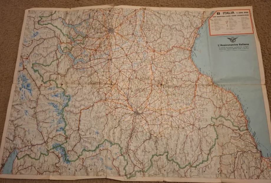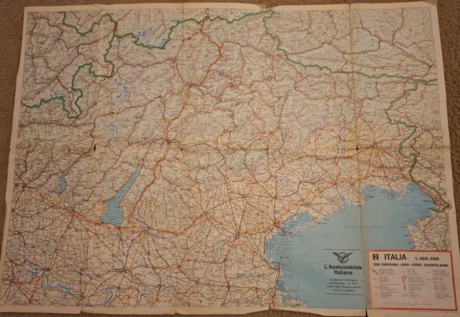Karta / mapa sjeverne Italije - izdanje firme L'Assicuratrice Italiana