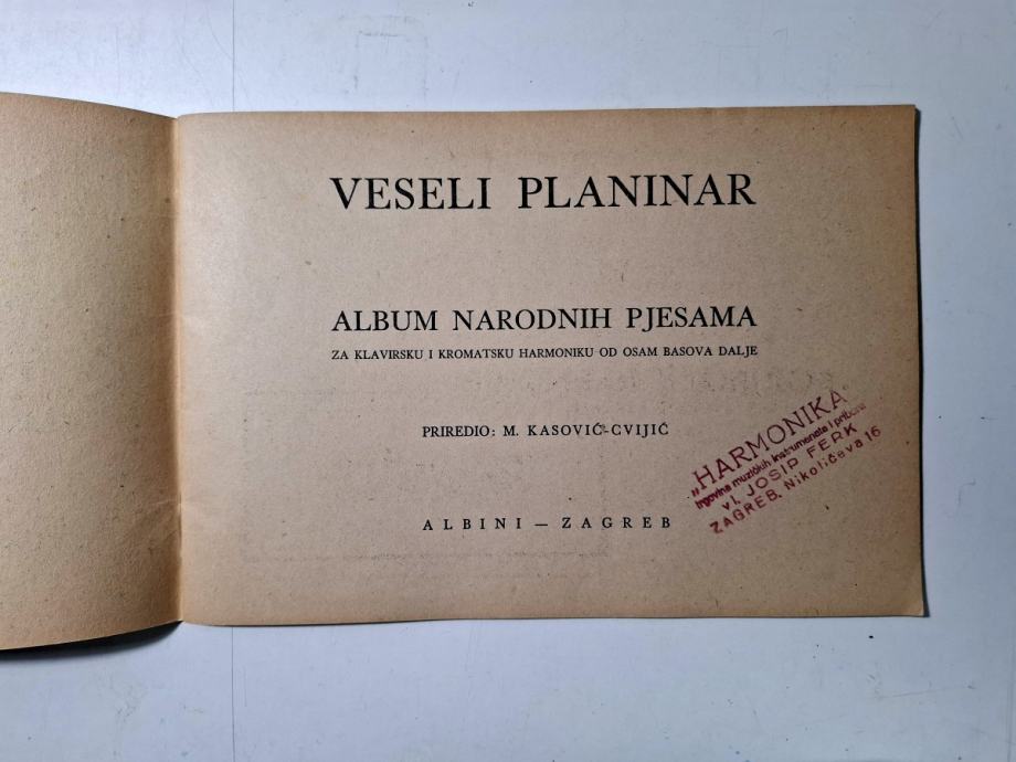 Veseli planinar : album narodnih pjesama : za klavirsku i kromatsku harmoniku od osam basova dalje
