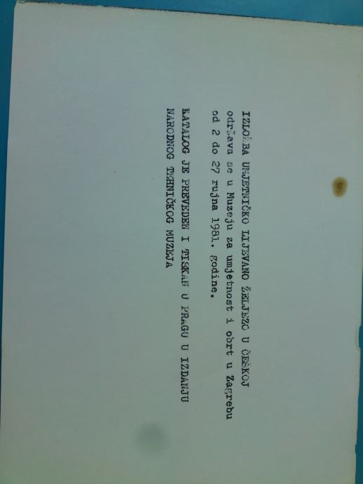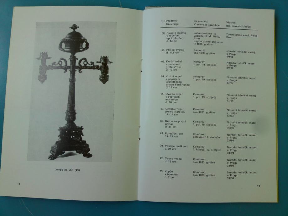 Izložba : umjetničko lijevano željezo u češkoj, koja je održana u muzeju za umjetnost i obt u zagrebu od 02. do 27. rujna 1981.g., katalog je preveden i tiskan u pragu u izdanju Narodnog tehničkog muzeja u Pragu. 36 str, sa puno c/b fotki.