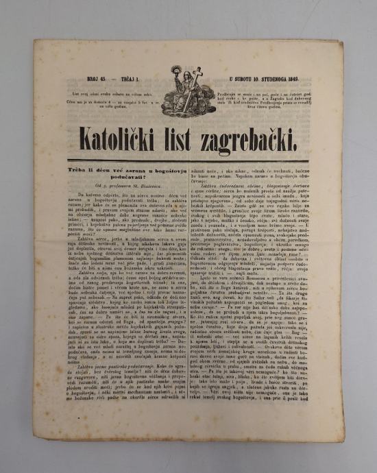 Katolički list zagrebački br. 45/1849.Urednik: Stepan MuzlerStranica: 6Dimenzije: 23x29Jezik: ZagrebPismo: LatinicaStanje: Vrlo dobroUvez: MekiGodina: 1849