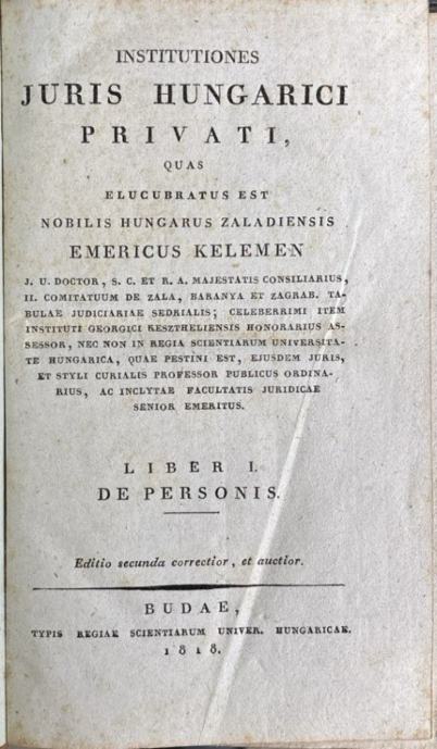 Kelemen Emericus: Institutiones juris hungarici privati I. De personis