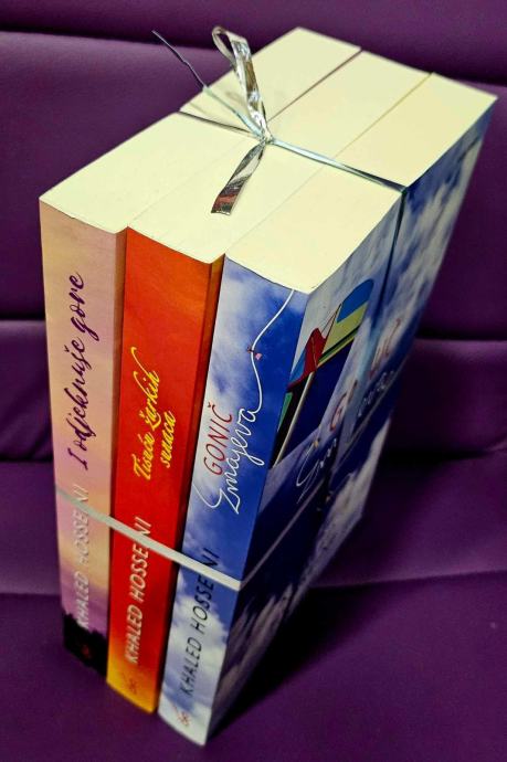 I ODJEKNUŠE GOREU jednom afganistanskom selu 1952. godine siromašni Sabur pripovijeda djeci, desetogodišnjem Abdullahu i trogodišnjoj Pari, priču o dječaku kojeg je odveo demon. No, već će idućeg dana ta priča poprimiti stvarnije, puno zlokobnije tonove; Sabur će, kako bi preživio, biti prisiljen dati svoju kćerkicu bogataškom paru bez djece u gradu Kabulu. Ta će odluka, u desetljećima koja će uslijediti, obilježiti i potomke i poznanike obitelji, obilazeći cijeli svijet – od Kabula, preko Pariza i San Francisca, do grčkog otoka Tinosa – i neprestano se širiti, sa sve složenijim i dirljivijim posljedicama.TISUĆU ŽARKIH SUNACAMarjam je tek petnaest godina kad je pošalju u Kabul da se uda za trideset godina starijeg Rašida. Gotovo dva desetljeća kasnije, u zemlji koja ubrzano tone u propast, tragedija pogađa petnaestogodišnju Lejlu, koja mora napustiti svoj dom i stupiti u Marjamino nesretno domaćinstvo. Lejla i Marjam naći će utjehu jedna u drugoj, njihovo prijateljstvo postat će neraskidivo i snažno poput rodbinskog. Kako vrijeme prolazi, u Afganistanu na vlast dolaze talibani, ulice Kabula odjekuju od puščane paljbe i bombi, a život se pretvara u očajničku borbu protiv gladi, surovosti i straha. Ustrajnost dviju žena nailazi na iskušenja koja nisu mogle naslutiti niti u najgorim noćnim morama.<br>Tisuću žarkih sunaca, drugi po redu roman iz pera Khaleda Hosseinija, jednog od najprodavanijih i najutjecajnijih autora 21. stoljeća, govori o dugogodišnjem neraskidivom prijateljstvu između dviju žena koje su pretrpjele neizreciv gubitak i muke kroz desetljeća ratovima obilježene afganistanske povijesti. Nezaboravan je to portret jedne ranjene zemlje i duboko potresna priča o obitelji i neobičnom prijateljstvu, priča o jednom vremenu koje ne prašta i neuništivoj ljubavi. Baš kao i njegov prethodnik, roman Gonič zmajeva, tjednima se zadržao na bestseler listi New York Timesa, uprizoren je na kazališnim daskama, a najavljena je i njegova ekranizacija.GONIČ ZMAJEVA<br>Gonič zmajeva prvi je roman afganistanskog pisca Khaleda Hosseinija, koji je odmah postao uspješnicom, provevši čak 101 tjedan na listi najčitanijih naslova The New York Timesa. Isti nadimak nosi i Hasan, nepismeni afganistanski dječak s nevjerojatnom sposobnošću da predosjeti na koje će mjesto sletjeti papirnati zmaj. Tridesetosmogodišnji Amir, Hasanov najbliži prijatelj, priča o svojem životnom putu koji vodi od Kabula do Pešavara u Pakistanu, te potom do San Francisca. Paralelno uz priču o dječačkom prijateljstvu koje razaraju strah, ljubomora i okrutnost koja nadmašuje čak i onu političku, teče priča o modernom Afganistanu, nevjerojatno nesretnoj zemlji koju je načela sovjetska okupacija a potom dokrajčio talibanski režim. Amirov osjećaj krivice koji ga proganja kad god se sjeti svojeg razorenog grada postaje nepodnošljiv, i kad se vrati da bi spasio Hasanovo siroče, razvija se zaplet koji opčinja i napetošću i osjećajnošću… Gonič zmajeva preveden je na više od četrdeset jezika, a redatelj Marc Forster (Monster's Ball) i scenarist David Benioff (Troja) oživjeli su na velikom platnu ovu toplu priču o afganistanskom emigrantu. Veći dio filma je na engleskom jeziku, no mnogo je scena na darskom (afganistanski dijalekt farskog, odnosno perzijskog). Postavu filma čine nepoznati glumci porijeklom s Bliskog Istoka koji nam svojom izvanrednom glumom približavaju lica i politički kontekst tragične sudbine Afganistana, a dječaci koji glume mlade Amira i Hasana izuzetno su uvjerljivi i prirodni, te savršeno utjelovljuju dvojicu dječaka različitog etničkog i klasnog podrijetla, kao i njihovo prijateljstvo koje će prerasti u mnogo više. Khaled Hosseini jedan je od najprodavanijih američkih pisaca u 21. stoljeću, a osim po književnim biserima ostat će zapamćen i po humanitarnom radu koji je ostvario kroz svoju fondaciju spašavanjem i utjecanjem na živote nebrojenih ljudi zarobljenih u vihoru ratnih razaranja, korupcije i nasilja. Hosseini je 2006. imenovan za ambasadora dobre volje UNHCR-a.<br><br>Stranica: 304+316+292<br>Dimenzije: 152x235 mm<br>Jezik: Zagreb<br>Pismo: Latinica<br>Stanje: Nova knjiga<br>Uvez: Meki<br>Godina: 2018<br>