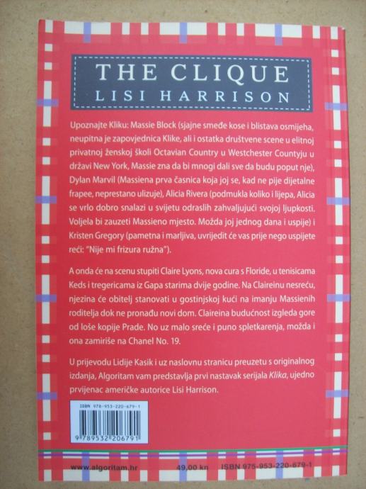 Upoznajte Kliku: Massie Block (sjajne smeđe kose i blistava osmijeha) neupitna je zapovjednica Klike, ali i ostatka društvene scene u elitnoj privatnoj ženskoj školi Octavian Country u Westchester Countyju u državi New York. Massie zna da bi mnogi dali sve da budu poput nje, Dylan Marvil (Massiena prva časnica koja joj se, kad ne pije dijetalne frapee, neprestano ulizuje), Alicia Rivera, podmukla koliko i lijepa, vrlo se dobro snalazi u svijetu odraslih zahvaljujući svojoj ljupkosti. (Voljela bi zauzeti Massieno mjesto. Možda joj jednog dana i uspije) i Kristen Gregory (pametna i marljiva, uvrijedit će vas prije nego uspijete reći: "Nije mi frizura ružna").