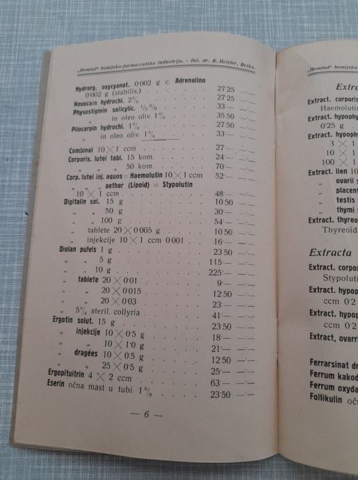 knjiga cjenovnik 1926 farmaceutskih preparata dr. heisler