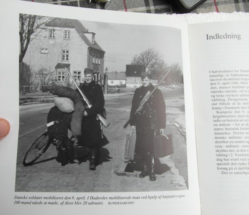 Knjiga je na danskom s potpisom autora, ima 64 stranice i puno fotki njemačkih i danskih vojnika i opreme na početku 2 svj. rata.