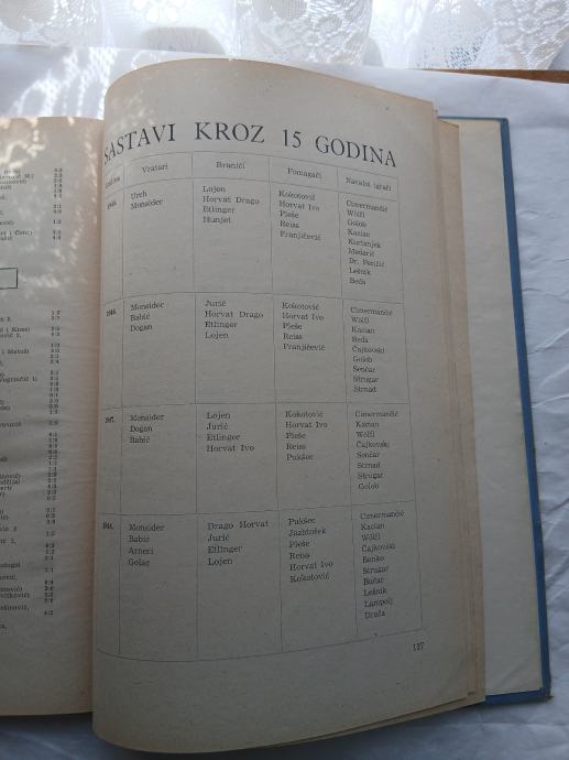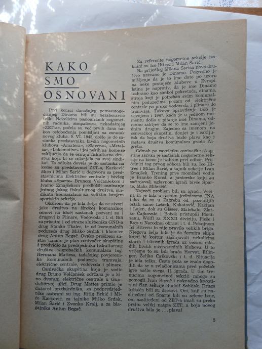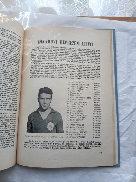 Knjiga Dinamo 1945-1960 135 stranica izdavač NK Dinamo tisak "Borba"Zagreb 1960 god tvrdi uvez bez oštećenja savršeno očuvano samo malo požutjela obzirom na godište.Vrlo detaljna povijest Dinama puno fotografija iz tih vremena,sastavi momčadi statistike malo poznati detalji o klubu dosta priča "iza kulisa"-anegdotalnih i drugačijih.Predgovor Veceslav Holjevac. Uvodna rijec Ivan Šibl.Knjiga je tiskana u nepoznatom-malom broju primjeraka naručivali su se putem telefona tijekom 1959 te godine kod NK Dinama te se čekalo da se sakupi određen broj naručitelja.Izdanje je doživjela 1960 te godine.Uz knjigu dolazi i zastavica i značka iz 1960 te te članska iskaznica s markicama o plaćenoj članarini klubu.sve vidljivo na slikamaRaritet kakvog nema,maltene očevina...Nema pregovora o cijeni,tvrd sam za ovu knjigu.Osobno preuzimanje.Eventualno dostava HP pouzećem nakon uplate na račun.