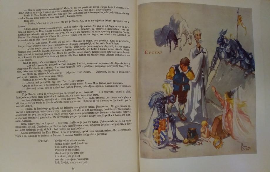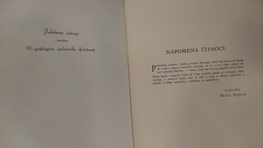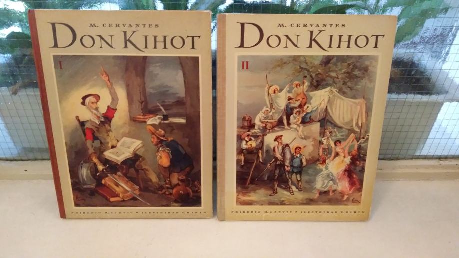 Prodajem komplet knjiga „Don Quijote" (Don Kihot) 1 i 2, autor Miguel De Cervantes Saavedra, jubilarno, bogato ilustrirano izdanje povodom 10-godišnjice izdavačke djelatnosti Naklade "Naša djeca", priredio Mate Ujević, ilustrirao Vladimir Kirin,