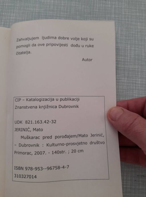 knjiga muškarac pred porođajem mato jerinić,dubrovnik 2007g.