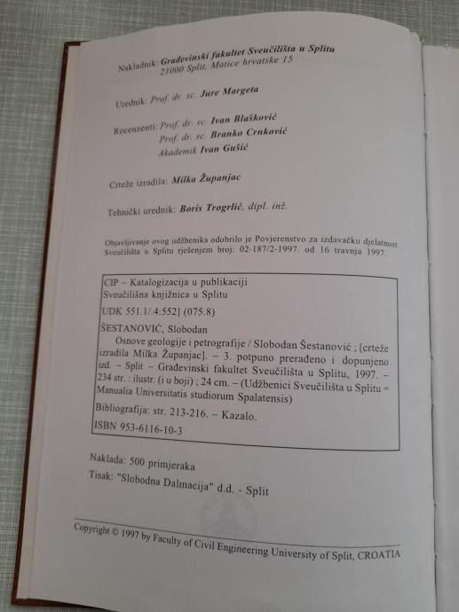 knjiga osnove geologije i petrografije građevinski fakultet 1997 split