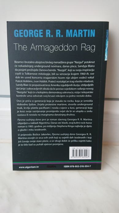 "Pjesma sudnjeg dana" prvi je roman slavnog Georgea R. R. Martina objavljen u nakladi Algoritma. Danas već klasik, ovaj kultni rock-horor roman iz 1983. godine, po mišljenju Stephena Kinga najbolje je djelo o glazbi i mitu šezdesetih.