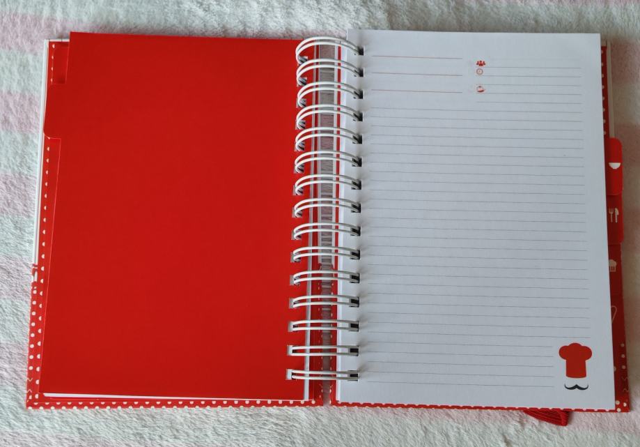 Prekrasna knjiga (bilježnica) za pisanje recepata, novo, spiralni tvrdi uvez.