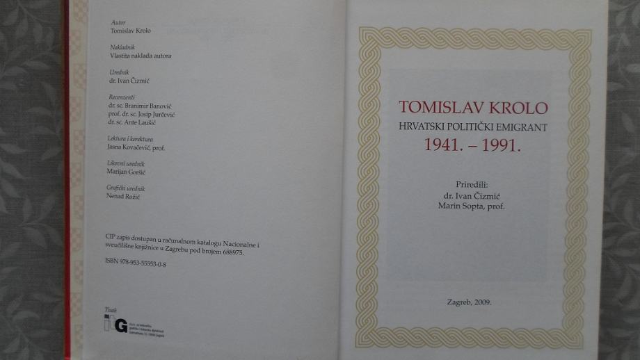 Prodajem knjigu"Tomislav Krolo hrvatska politička emigracija 1941.-1991."Tiskana u Zagrebu 2009.god,na 488 stranica.