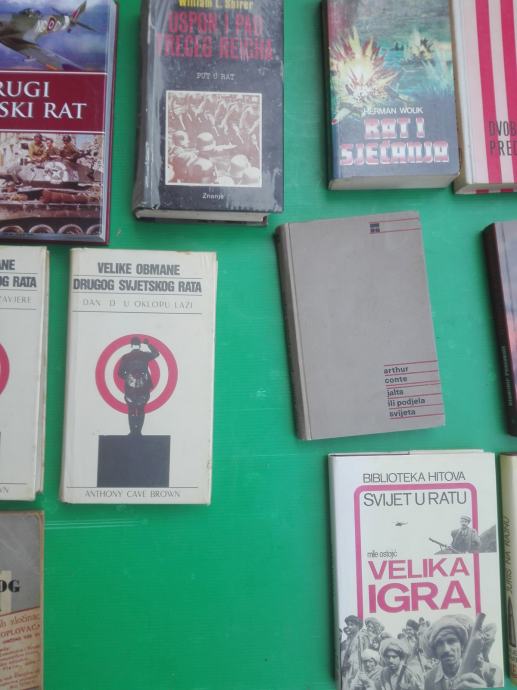 Knjige drugi svjetski rat, ww2. Sve su knjige usčuvane, na hrvatskom, i dokumentarnog karaktera. Jedna knjiga košta 7€. Na sms nemogu odgovoriti, najbolje bi bilo da me nazovete 099 687 5657 ili pošaljete poruku preko Njuškala.