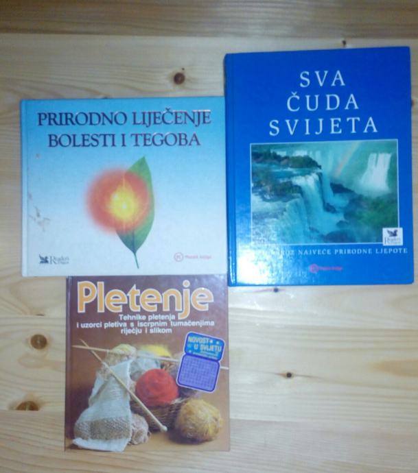 Prodajem knjige sa slike sve za 50 kn...Prirodno liječenje bolesti i tegoba,Sva čuda svijeta,Pletenje...3 knjige/50 kn