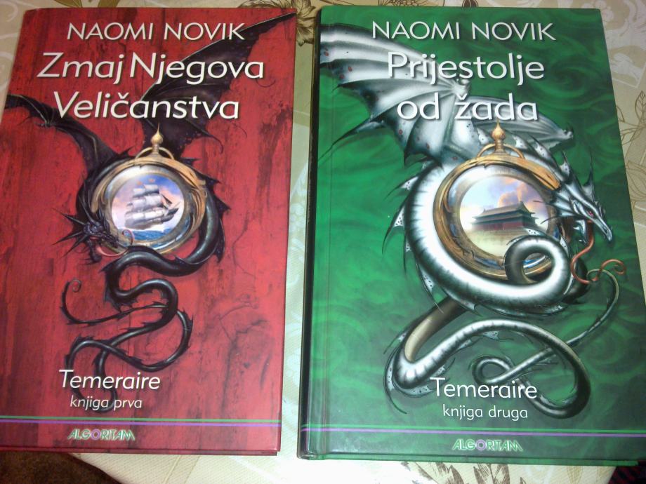 Naomi Novik: Temeraire - Zmaj njegova veličanstva-knjiga prva, Prijestolje od žada-knjiga druga, Barutni rat-knjiga treća. Novo jednom čitano. Cijena 150kn za sve tri knjige.