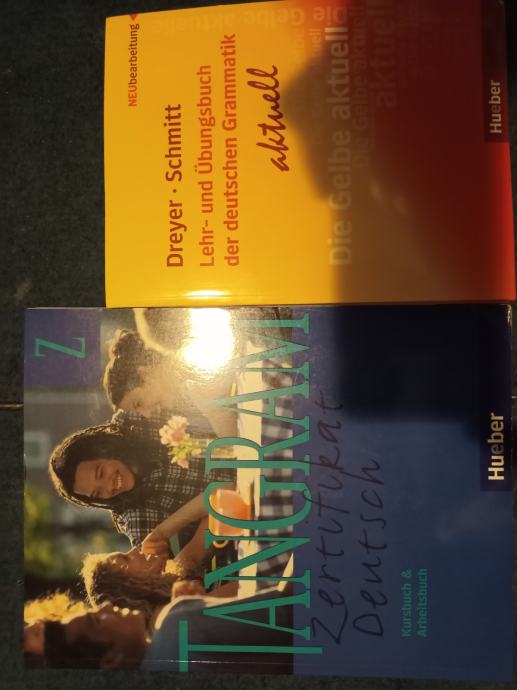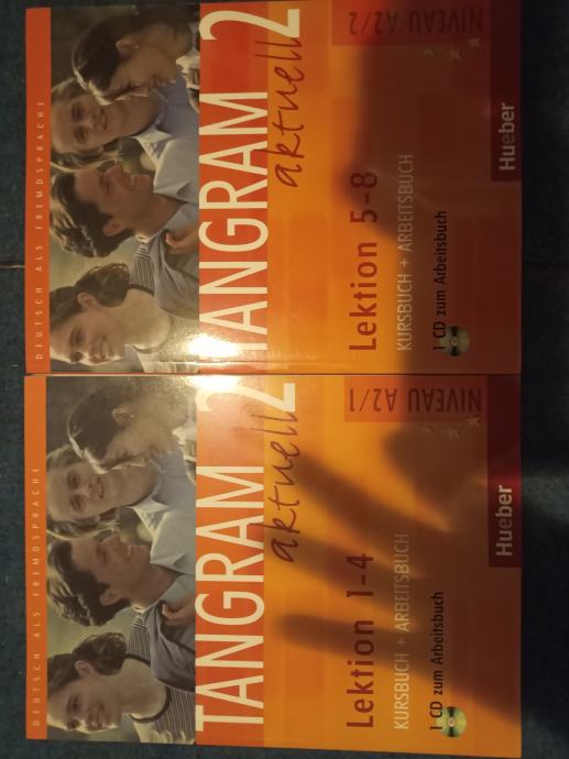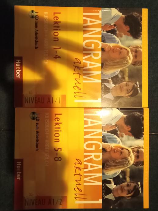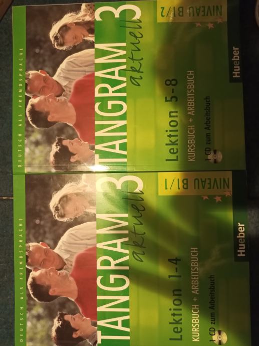 Prodajem komplet knjiga za učenje njemačkog jezika Tangram aktuell 1-3 (Hueber), od A1-B1 (kursbuch + arbeitsbuch mit cd) + knjiga iz gramatike + knjiga Tangram Z za pripremu polaganja ispita za dobivanje certifikata iz poznavanja njemačkog jezika. Knjige su nove- novcate, netaknute, izvrsno očuvane. Šaljem poštom.
