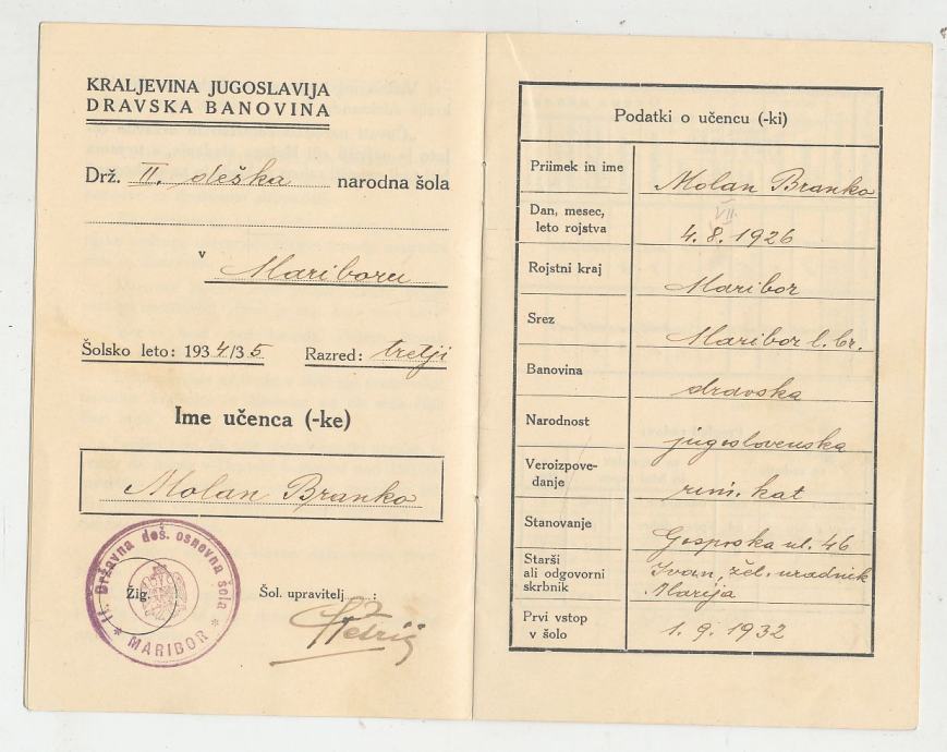 Knjižica za učence - ke narodnih šol Kraljevina Jugoslavija Maribor